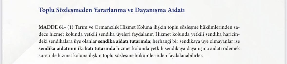 Veteriner Hekim-Sen olarak bu maddeyi; çalışanları ayrıştıran, sendikal özgürlüğü zedeleyen ve iş yeri barışını bozan bir girişim olarak görüyor ve reddediyoruz. Aidat baskısıyla çalışanları belirli bir sendikaya yönlendirmek, özgür iradeye müdahaledir. Yasalarla güvence altına alınmış ve gönüllülüğe dayalı sendikal örgütlenme anlayışını yok sayan bu teklif, ahlaki ve hukuki açıdan kabul edilemez. Toplu sözleşme süreçleri, tüm kamu emekçileri adına yürütülmelidir.