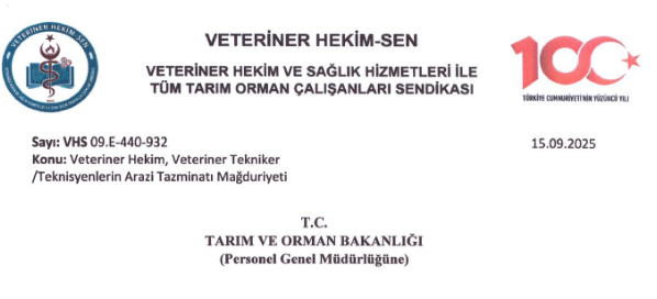 Veteriner Hekimler, Veteriner Sağlık Tekniker ve Teknisyenleri için Arazi Tazminatı Talebimizi Tarım ve Orman Bakanlığı ile Gerekli Mercilere İlettik.